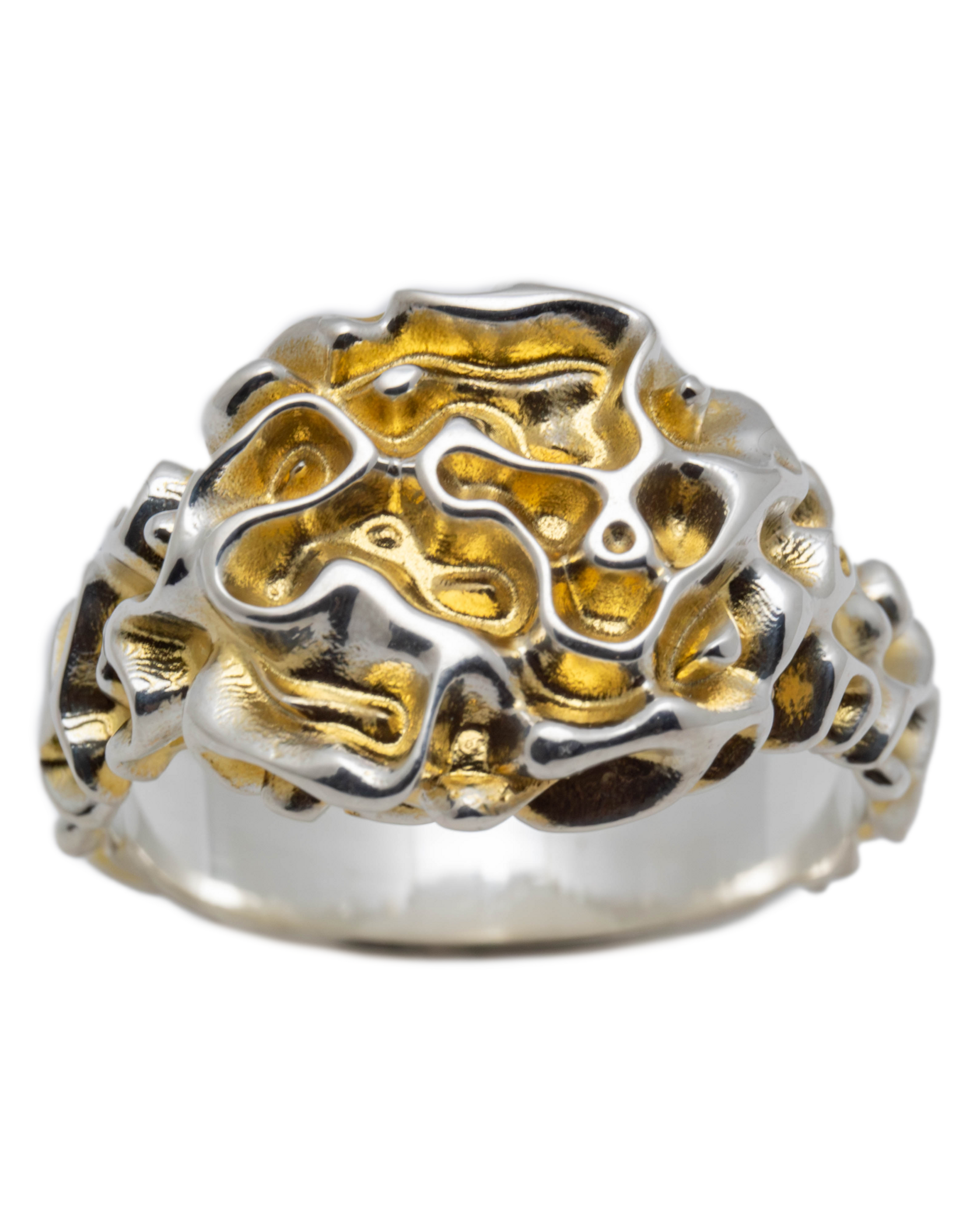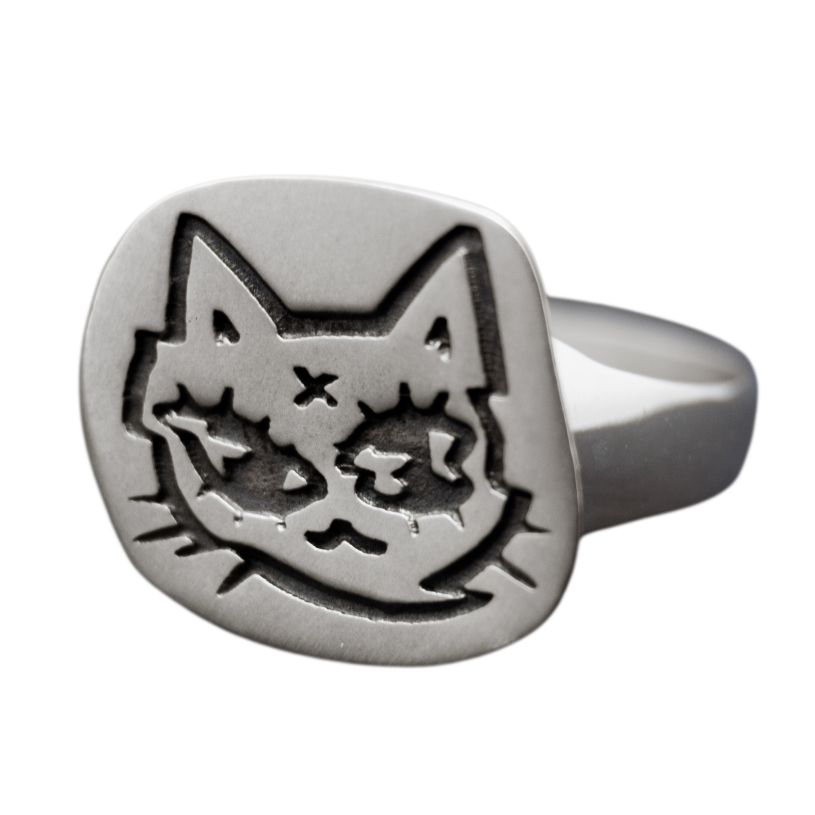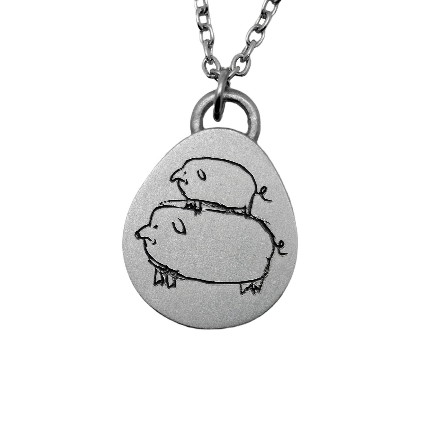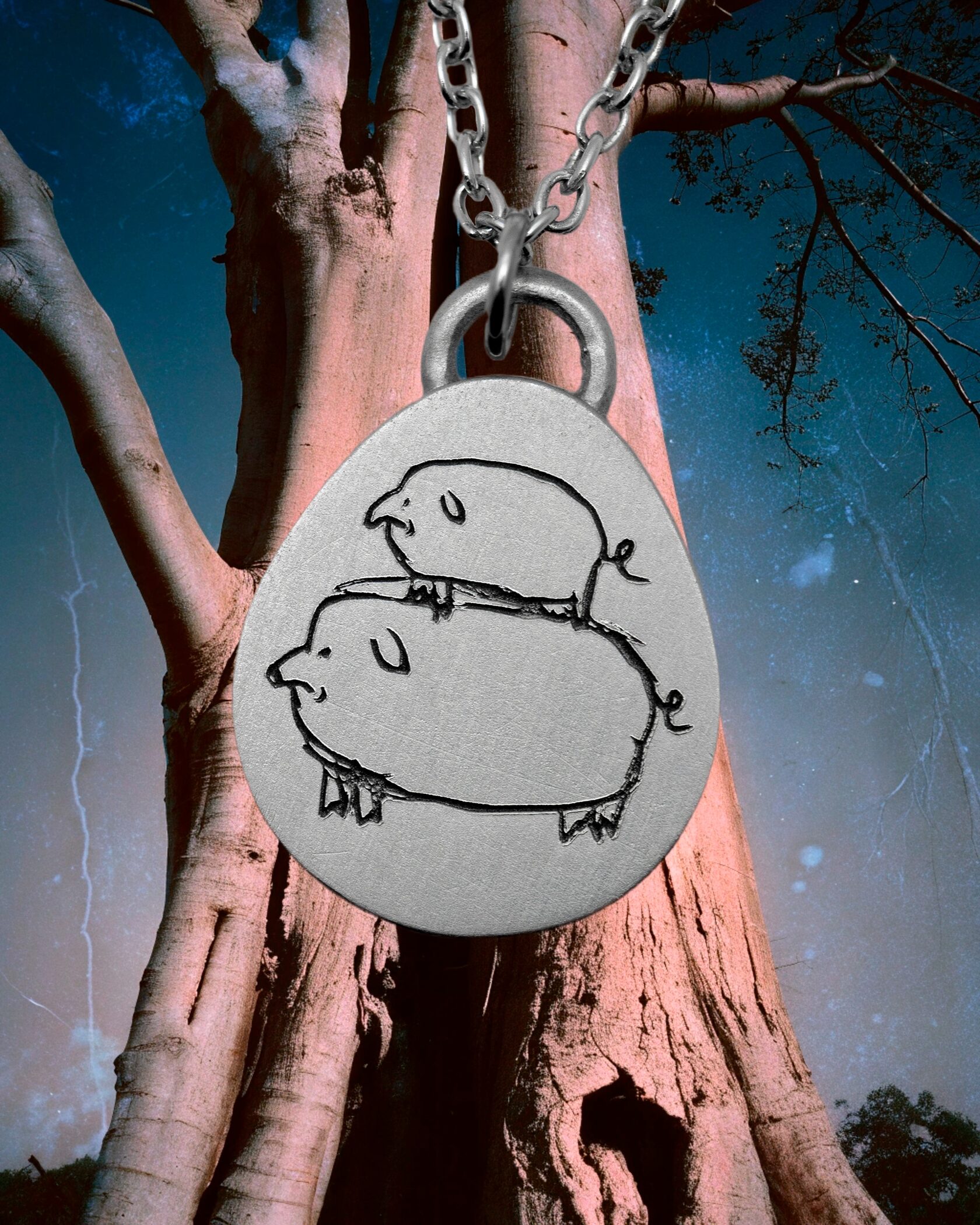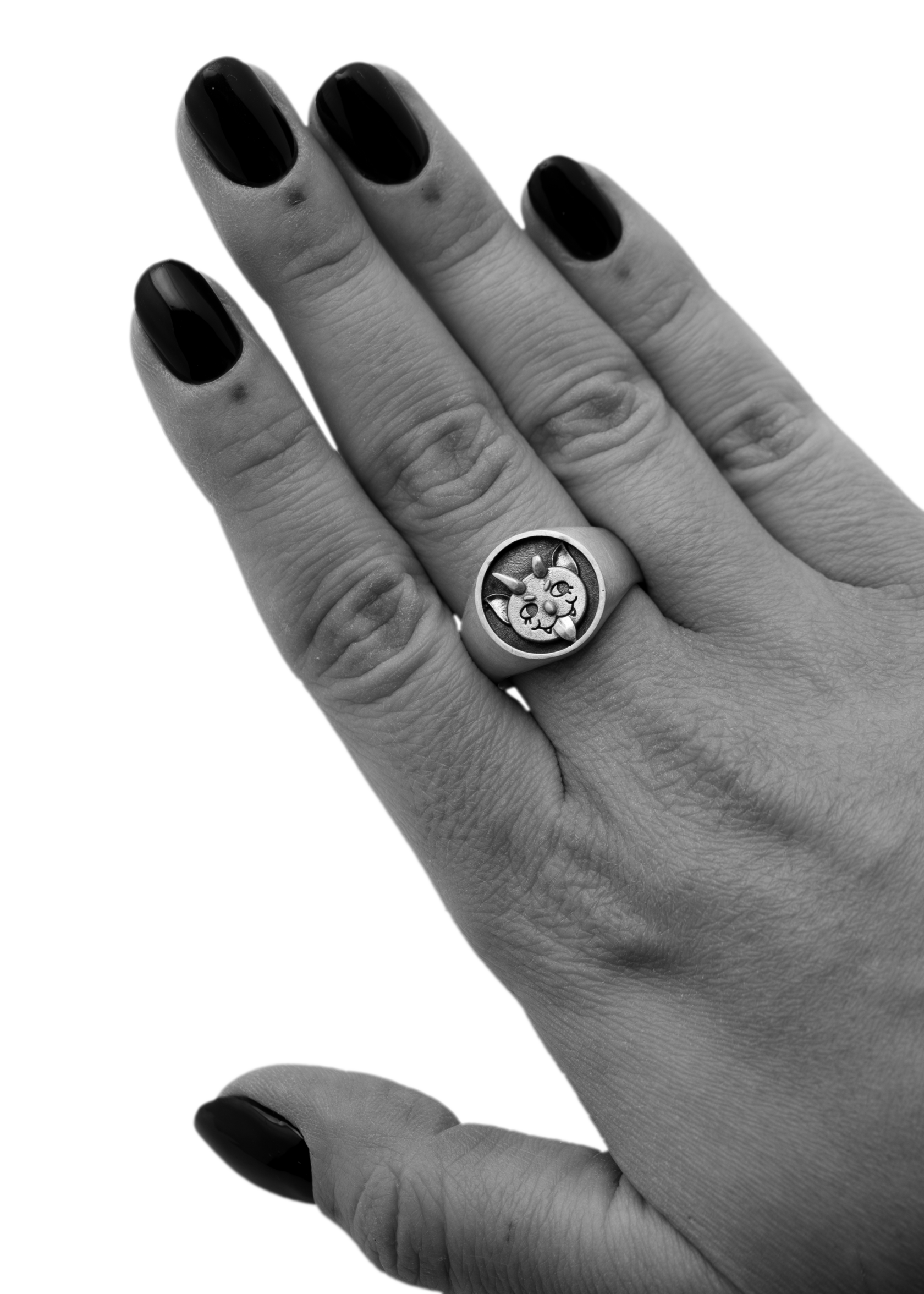 Клянусь, я видела старинный герб со свиньями стоявшими одна на другой, но с тех пор я не могу его найти. Гонимая этой идеей я сделала хаотичный скетч, под него мы сделали форму печатки в форме яйца и вот результат — обожаю это кольцо, одно из моих любимых.