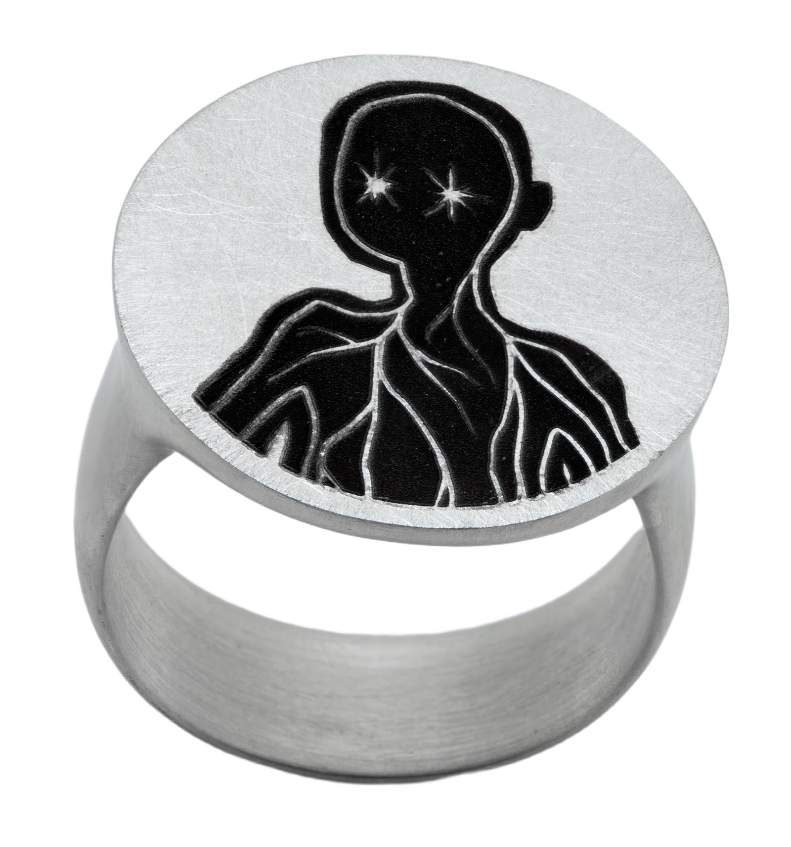 На эту линейку колец меня вдохновило посещение Крипты капуцинов в Риме, украшенные драгоценностями останки святых (например скелеты святого Бенедикта, Валентина, Валерия и многих других) и мемориальные кольца викторианской эпохи.
